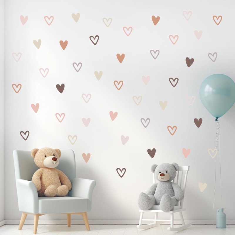 72psc Boho Heart Wall Stickers Girls Bedroom Removable Wall Decals Nursery Kids Room Decor, Cute Decorations, Pastel Hearts Wall Art Stickers for Kids Room Bedroom Playroom Nursery Room