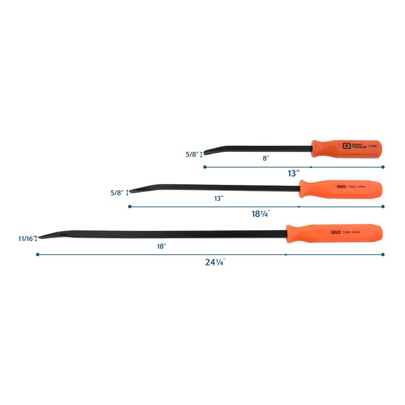 - Contains: 13", 18-1/4", 24-1/4" pry bars.
