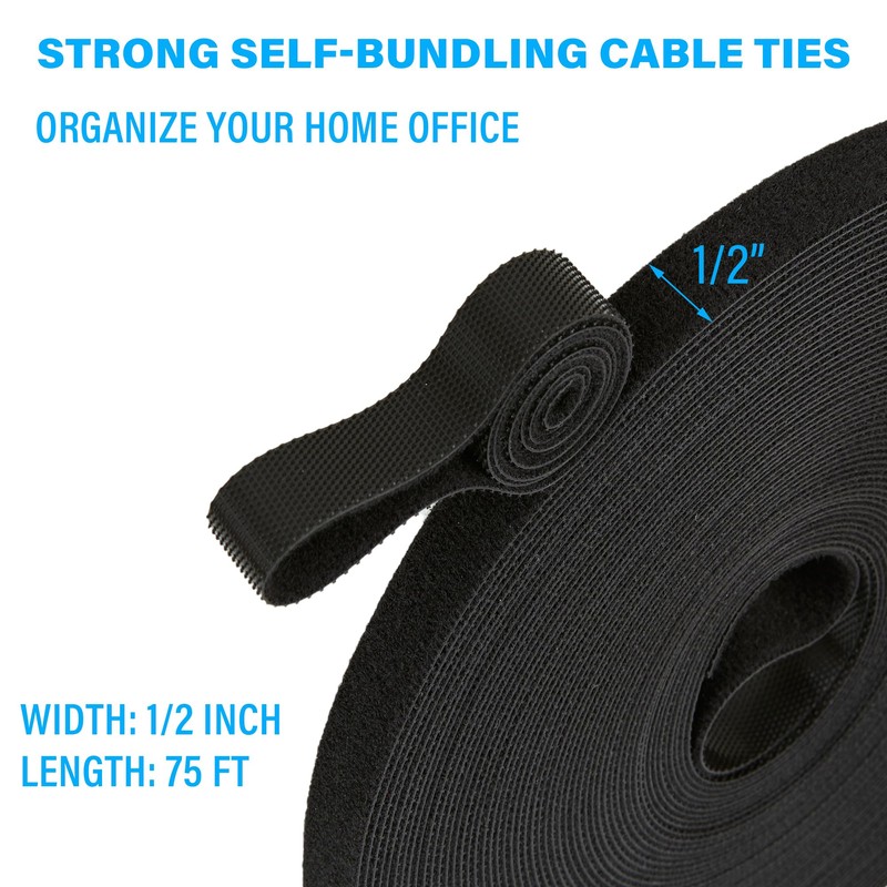 75 ft x 1/2 inch Hook and Loop Roll, Reusable Fastening Cable Ties, Multi-Purpose Cable Management Wire Ties Cable Straps for Organizing Home, Office and Data Centers