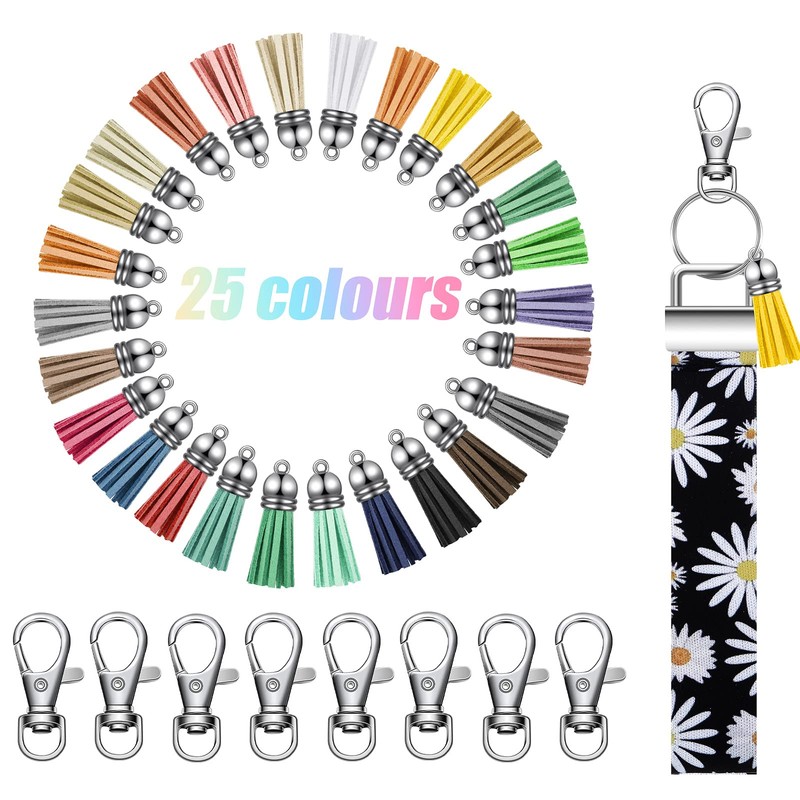 • Nice combinations: comes with 25 pieces key fob hardware in silver, 25 pieces leather tassels and 25 pieces swivel snap hooks in silver, nice combinations for you to make keychain lanyards or wristlet keychains