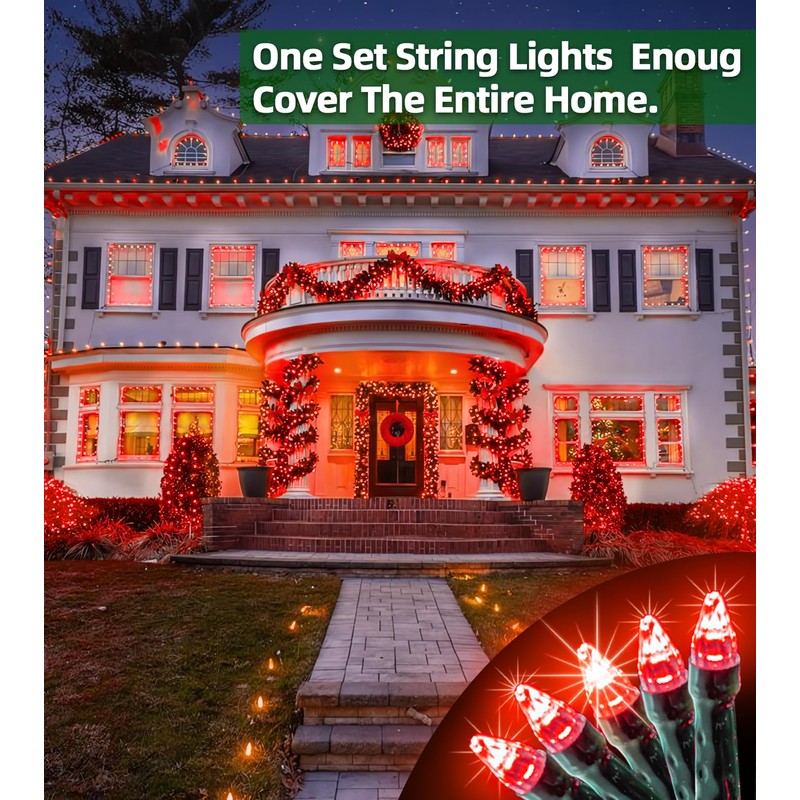 - Tapered Facet LED String Lights for Indoor & Outdoor Decor: Illuminate your home with 750 faceted cone lens LEDs spanning 240 feet. These versatile Christmas string lights are a ideal choice for decorating rooftops, patios, trees, and indoor holiday displays. Their scale supports a wide range of applications
