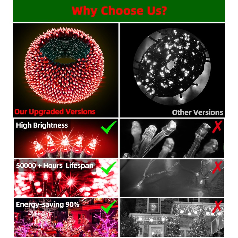 - Low Energy Consumption Lighting: Enjoy vibrant, low-energy LED Christmas lights engineered with safety in mind. The cool-touch design and low-voltage operation are ideal for indoor and outdoor use, these lights deliver brilliant illumination while reducing energy consumption