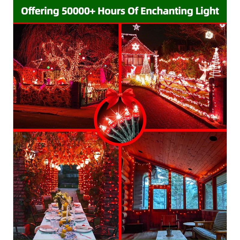 - Weather-Resistant & All-Season Use: Designed with weather-resistant materials, these outdoor string lights are suitable for interior decor or open-air installations, making them a ideal choice for garden, patio, and year-round decor. You can use these Christmas lights outdoors for seasonal decor