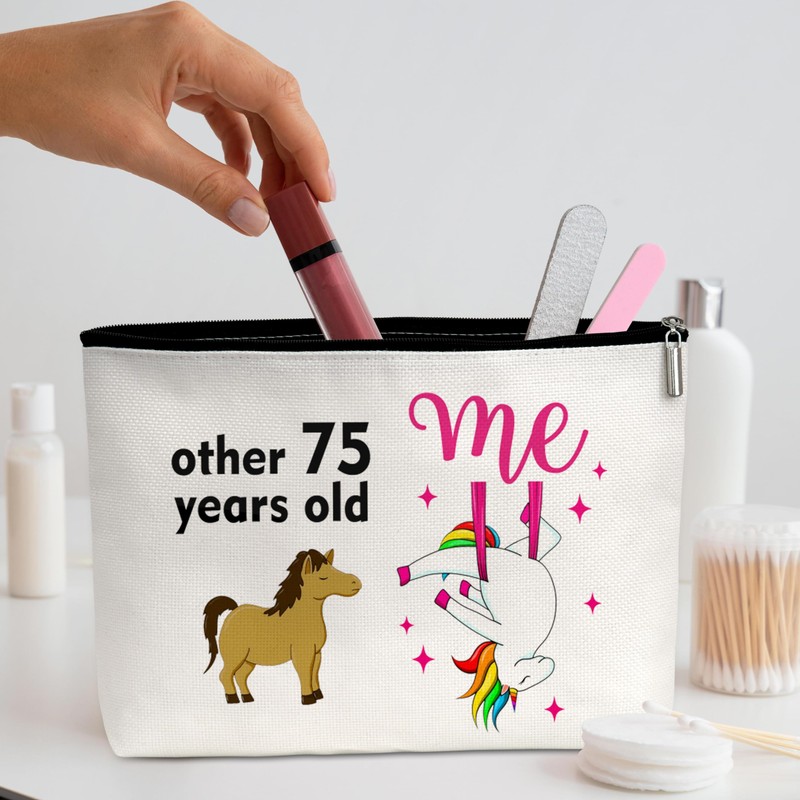 75th Birthday Gifts for Woman, 75 Years Old Funny Unicorn Makeup Bag, 75th Birthday Gifts Cosmetic Bag for Woman Sister Bestie Best Friends Mother Grandmother-A15