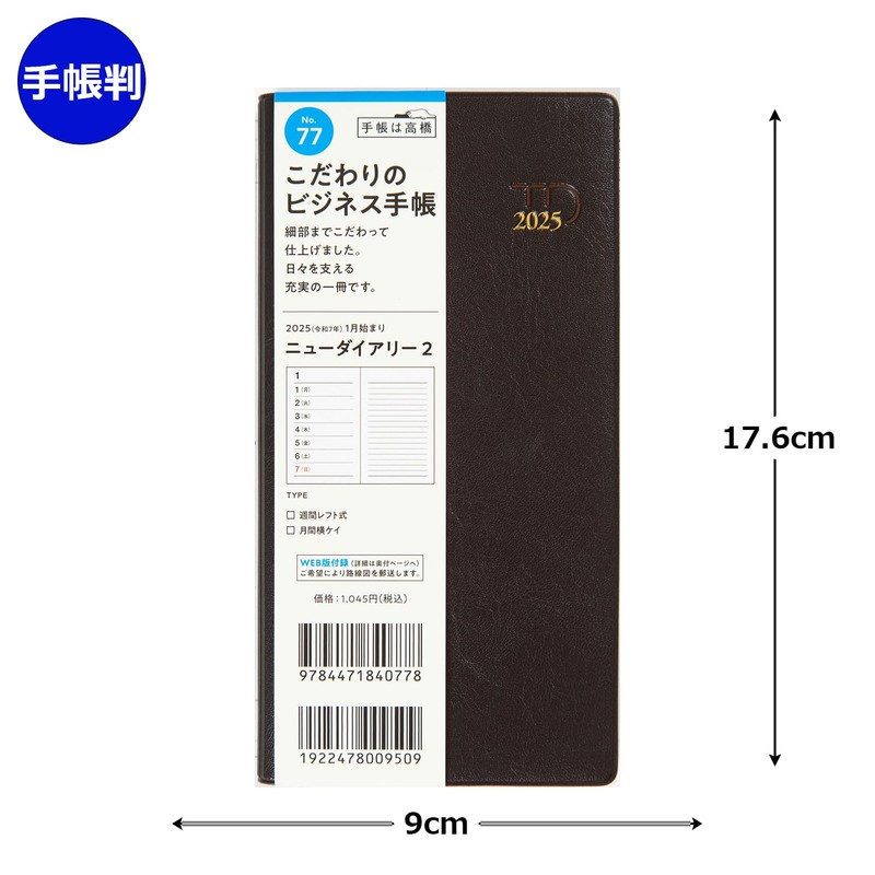 77 New Diary 2 Notebook, Takahashi Shoten, 2025 Edition, Tea Weekly, 170/85
