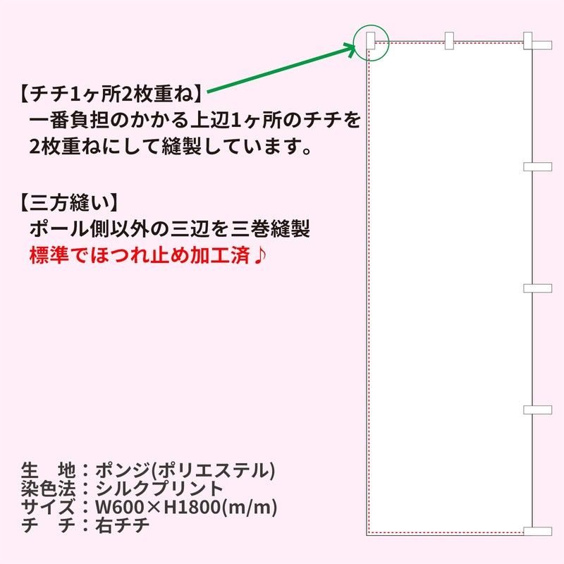 - Design: Anti-fraying treatment (3-way sewing), Right edge (3 upper side, 5 right side)