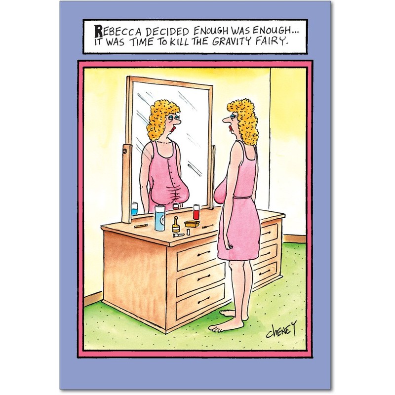 - INSIDE GREETING: "Don't Let Another Birthday Drag You Down. Happy Birthday." COVER - Rebecca decided enough was enoughÉ it was time to kill the gravity fairy.