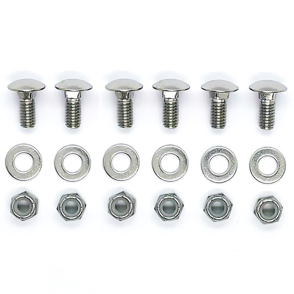 - This hardware replacement kit includes 6 each of the following: Carriage Bolts;Nylon Lock Nuts;Washers