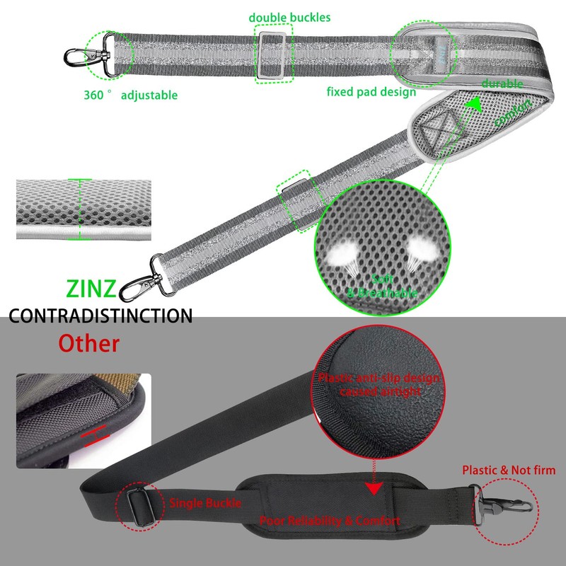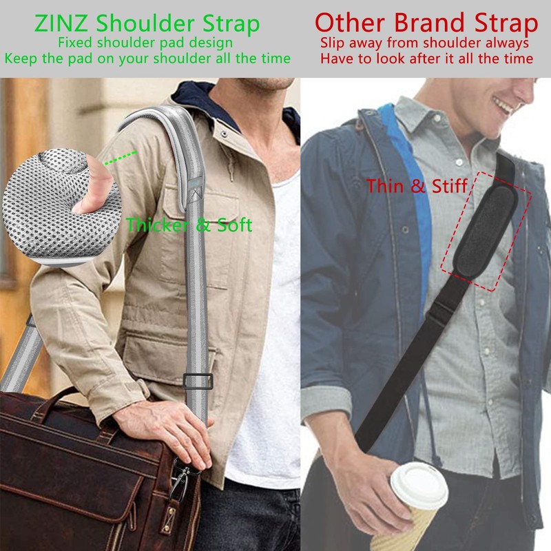 - 1. ABOUT ZINZ BAG SHOULDER STRAP: ZINZ universal bag strap replacement can replace all broken straps of ANY BAG WITH D-RINGS OR EQUIVALENT HARDWARE. Especially for shoulder bag / laptop computer bag / briefcase / messenger bag / duffel bag / diaper bag / tool bag / guitar bag. Professional package, 24hrs after-sale service, 30-DAY MONEY-BACK for ZINZ Shoulder Strap.