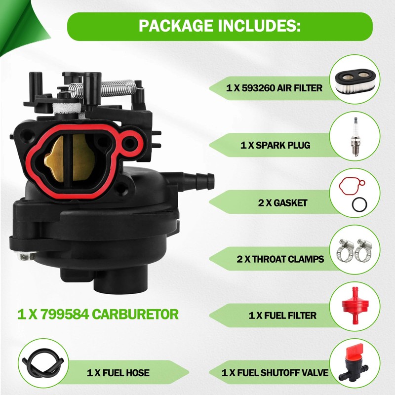 Rakiyada 799584 Carburetor Kit Compatible with Briggs and Stratton 594058 594057 592361 594529, 163cc Lawn Mower Parts Fits for Troy Bilt TB110 TB200 103M02 09P702 550EX 625EX 675EX 725EXI LC121P
