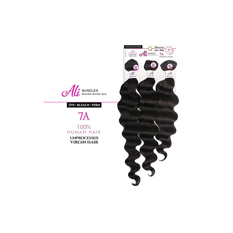 [7A Grade Unprocessed Brazilian Hair] Ali express Brazilian Human Hair 3 Bundles Ocean Wave -3 Bundles in 1 Pack Solution -Naturl Black (18+20+22)