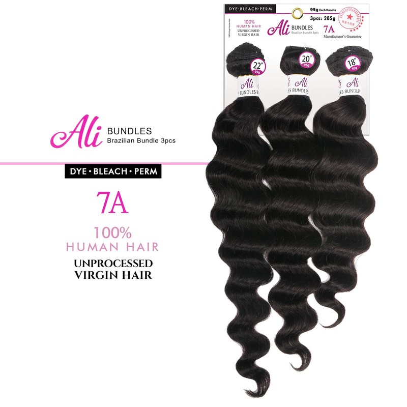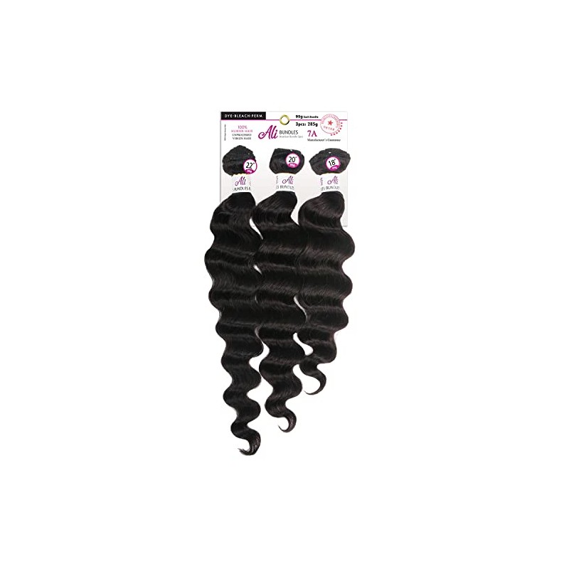 [7A Grade Unprocessed Brazilian Hair] Ali express Brazilian Human Hair 3 Bundles Ocean Wave -3 Bundles in 1 Pack Solution -Naturl Black (18+20+22)