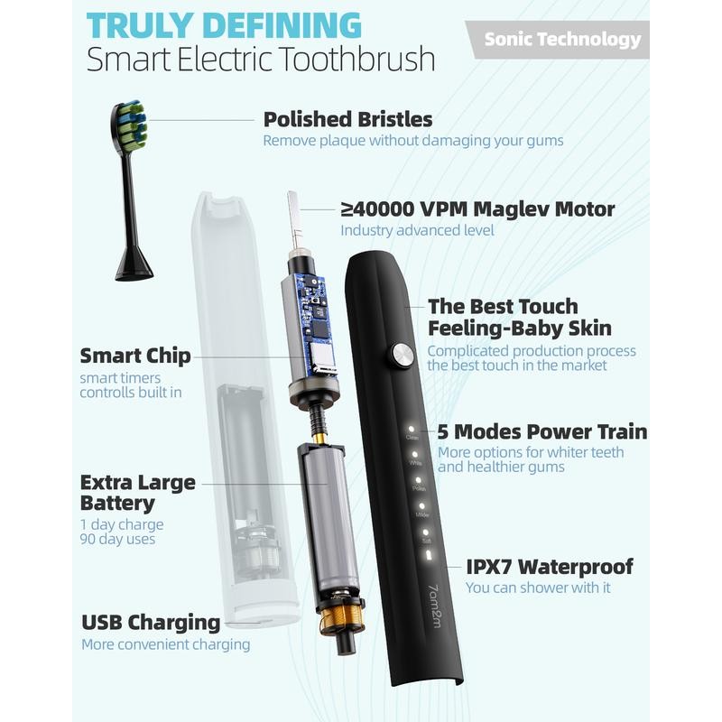 7AM2M Sonic Electric Toothbrush for Adults and Kids, with Travel Case & 8 Bru...