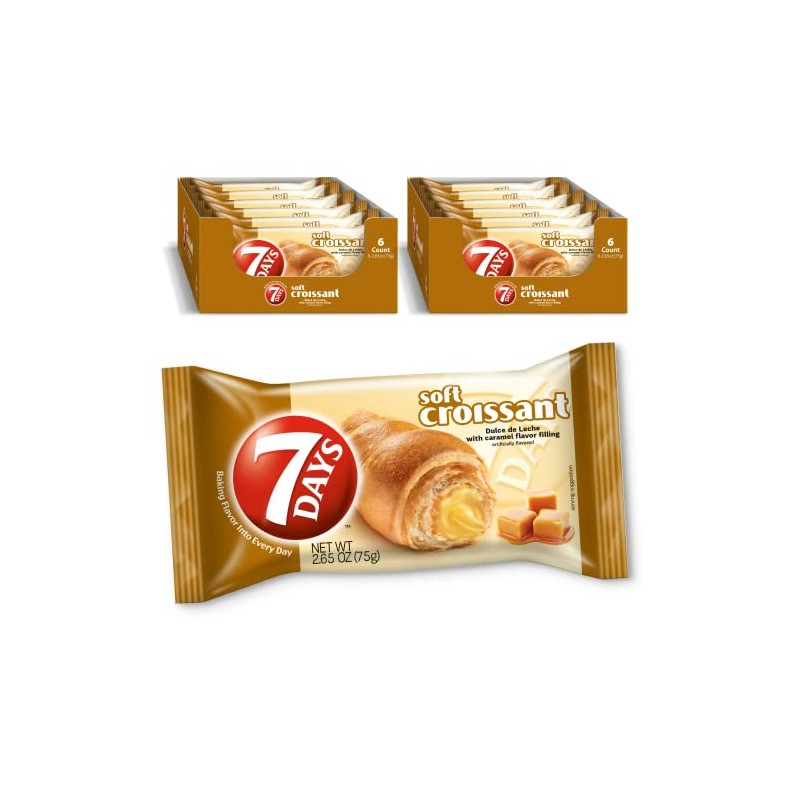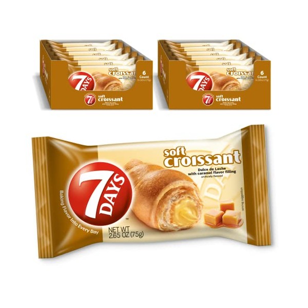 7Days Soft Croissant, Caramel - Dulce De Leche (12 Pack), Breakfast Pastry, Individually Wrapped On The Go Snack, Non-GMO (Pack of 12)