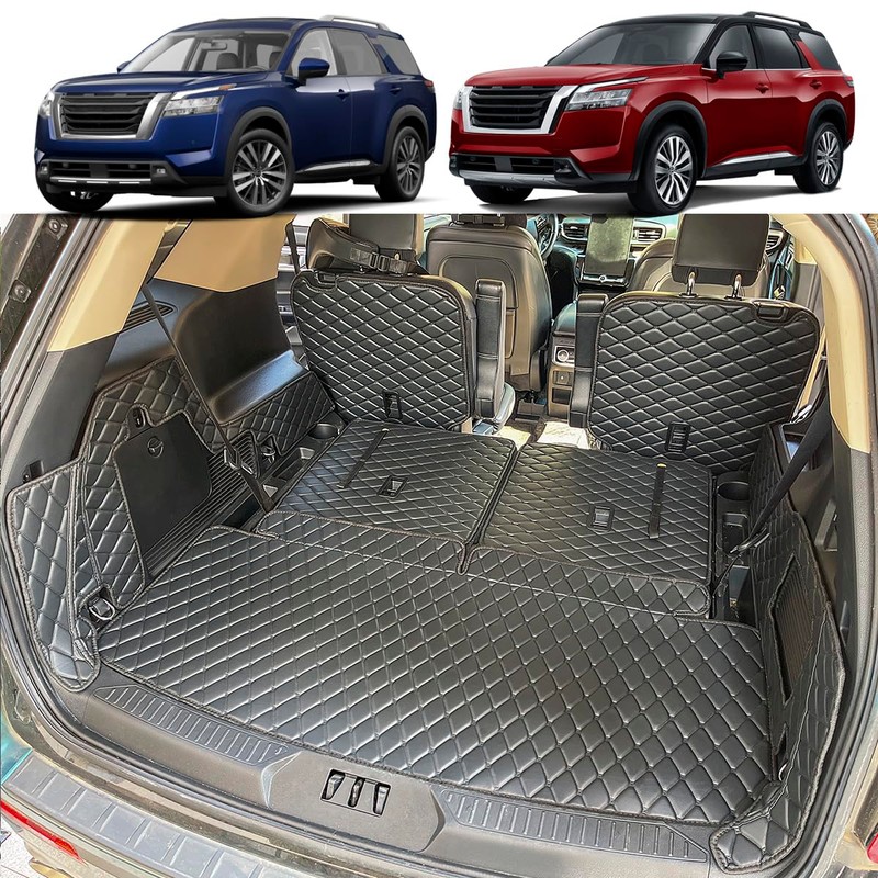 - CUSTOM FIT - Custom design for 2020-2025 Nissan Pathfinder Trunk Mat Cargo Liners Pathfinder Cargo Mat,3D modeling tech precision fit your loved car trunk interior contours, fully cover and protect original one