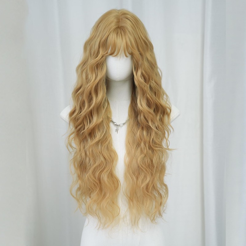 7JHH WIGS 32in Long Curly Wigs with Bangs for Black Women Long Curly Afro Big Bouncy Fluffy Synthetic Fiber Glueless Heat Resistant 150% Density Culry Wave Wig for Women Daily Used