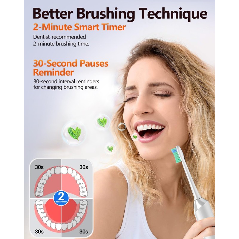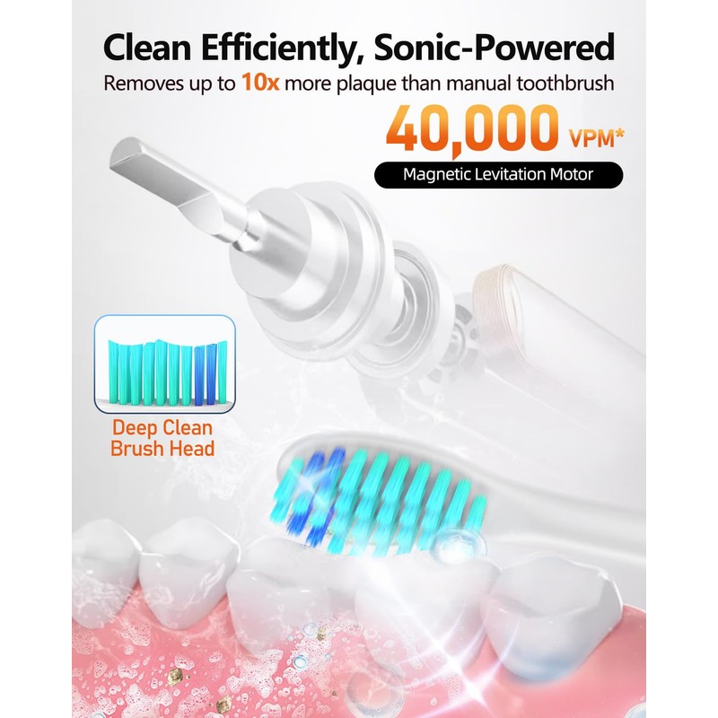 - Experience a Deep Clean with Sonic Toothbrush - Our electric toothbrush heads utilize ultrasonic technology to generate high vibrations at 40,000 VPM. This sonic power, combined with the oscillation of the bristles, ensures a thorough and comfortable deep cleaning of your teeth. Plus, with an additional deep cleaning brush head included, you can enjoy a unique cleaning method for even more effective oral cleaning. Discover a whole new level of brushing teeth experience