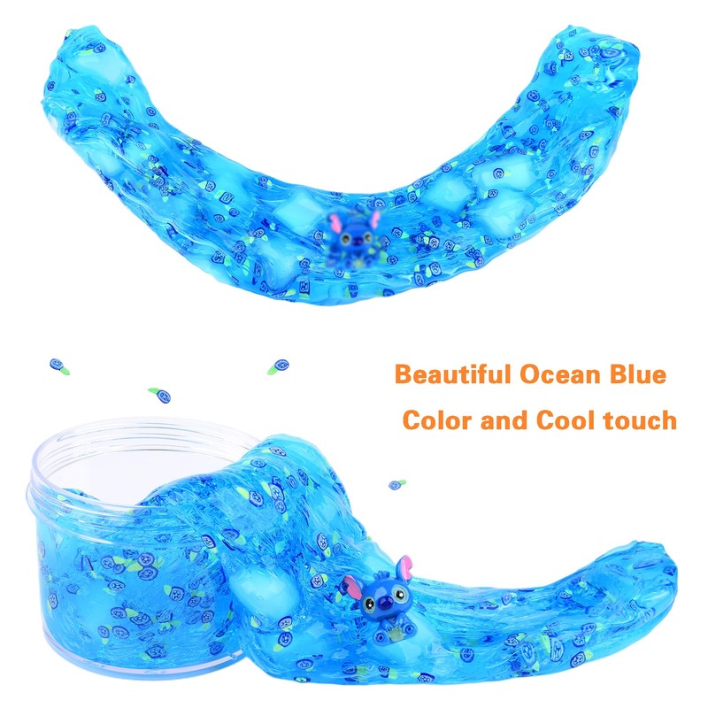 - Premade Slime: This is our newest creation, with an ocean blue theme looks stunning that kids will be entertained for hours. Anyway, just take it out of the jar and play with this slime as you like.
