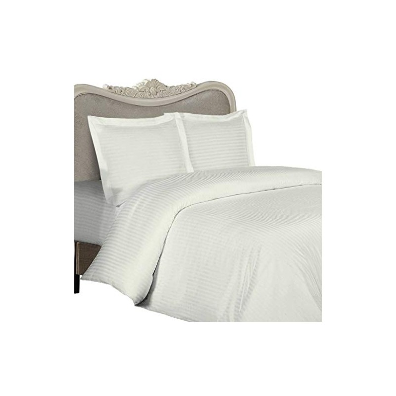 7PC ITALIAN 1500 Thread Count Egyptian Cotton Set - includes Sheet Set & Duvet Set, Queen, Ivory Stripe, Premium ITALIAN Finish