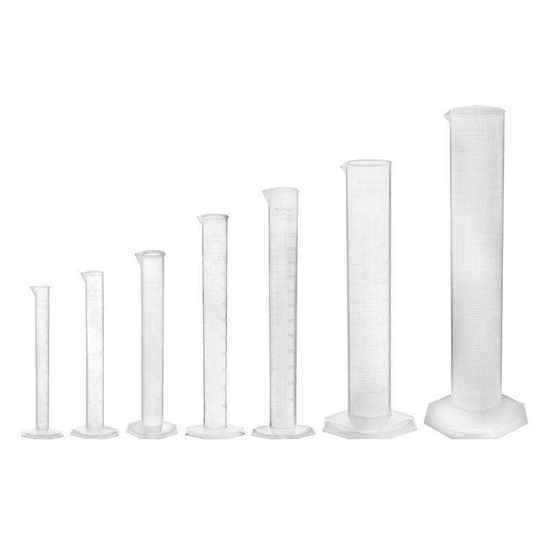 **Polypropylene Graduated Cylinder Set of 7, Octagonal Base - 10,25,50,100,250,500, 1000mL** _(7) Cylinders_ These polypropylene graduated cylinders have an octagonal base, are made from a single piece and are autoclavable. This is a perfect cylinder starter set including the following: 10mL Capacity, 0.2mL Graduation 25mL Capacity, 0.5mL Graduation 50mL Capacity, 1.0mL Graduation 100mL Capacity, 1.0mL Graduation 250mL Capacity, 2.0mL Graduation 500mL Capacity, 5.0mL Graduation 1000mL Capacity, 10.0mL Graduation