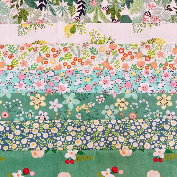 7Pcs 20" x 20" Cotton Fabric DIY Making Supplies Quilting Patchwork Fabric Fat Quarter Bundles DIY for Quilting Patchwork Cushions (Flower Green, 20" x 20")