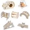 7pcs Hamster Toys Wooden Cage Accessories Include Snail House, Bell Toy, Seesaw Bridge, Slide House, Bridge,Dodge Toy, Swing and Exercise Toys for Hamster, Guinea Pig and Other Small Animals