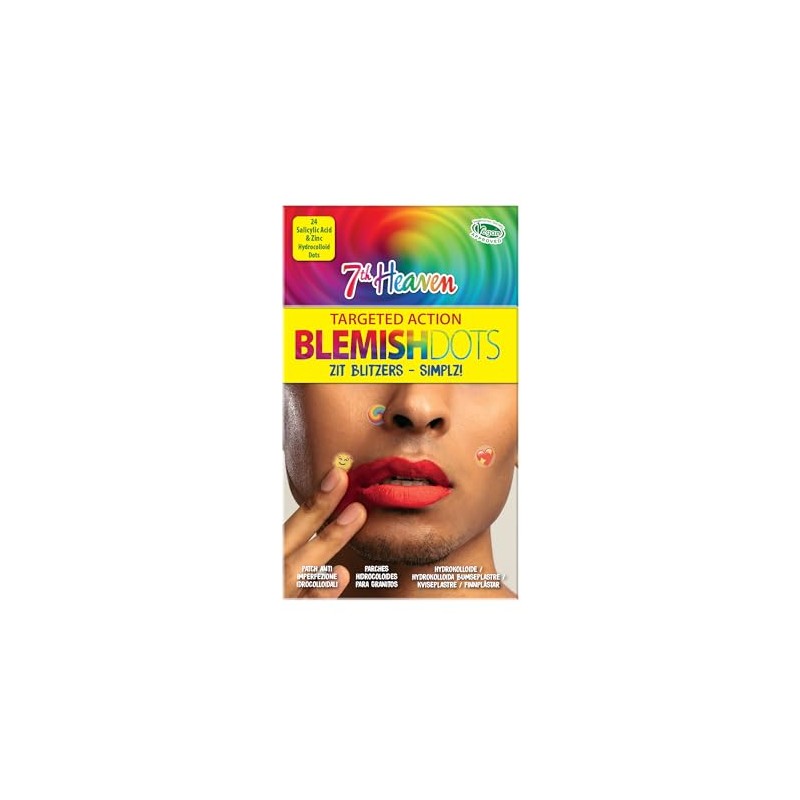 7th Heaven Blemish Dots – 24 Dots Per Pack – Fun and Colourful Printed Hydrocolloid Pimple Patches for Acne and Spot Treatment