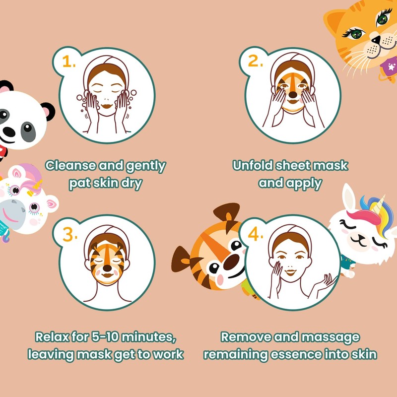 - PAMPER YOUR SKIN: Our fun animal-printed sheet face masks contain a mix of fruity ingredients to soothe, hydrate, and moisturise your skin