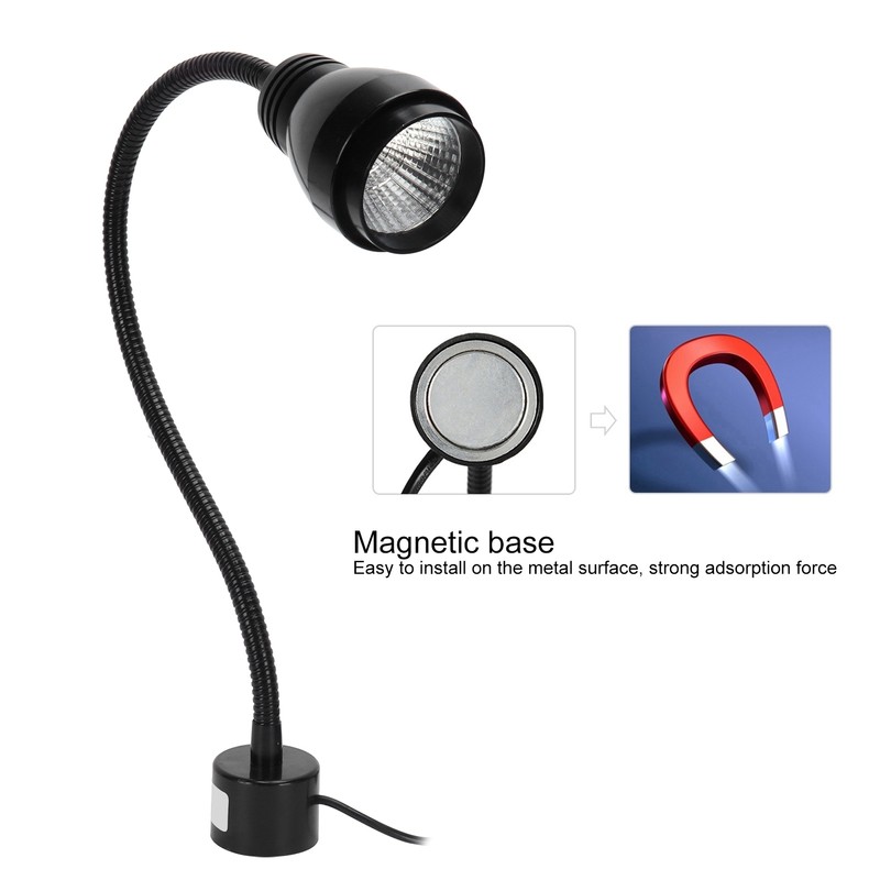 1、7W high power LED light source, high brightness, power saving, low light decay, will not harm the eyes 2、360 degree omni‑directional flexible gooseneck, free to adjust the angle of lamp, lets the light be precisely focused to wherever you need. 3、Magnetic base promotes easy installation on metal surface and convenient to use, has strong adsorption, not easy to fall off. 4、Wide application, suitable for machine shop, auto parts maintenance, manicuring, reading, studying and etc. 5、Made from premium aluminum, waterproof, impact resistance, sturdy, heat‑resistant and durable, the surface is oil resistant and easy to clean.