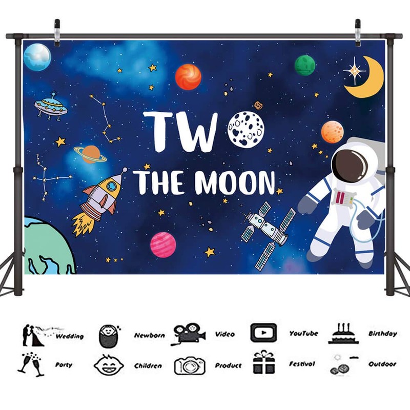 - 🌑APPLICATION: Two the moon backdrop are great to decorate our loved baby space 2nd birthday party, galaxy astronaut 2nd birthday party, 2 the moon birthday party, outer space second birthday party, etc, it will offer you an unforgettable experience!