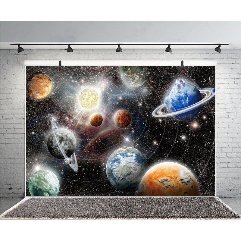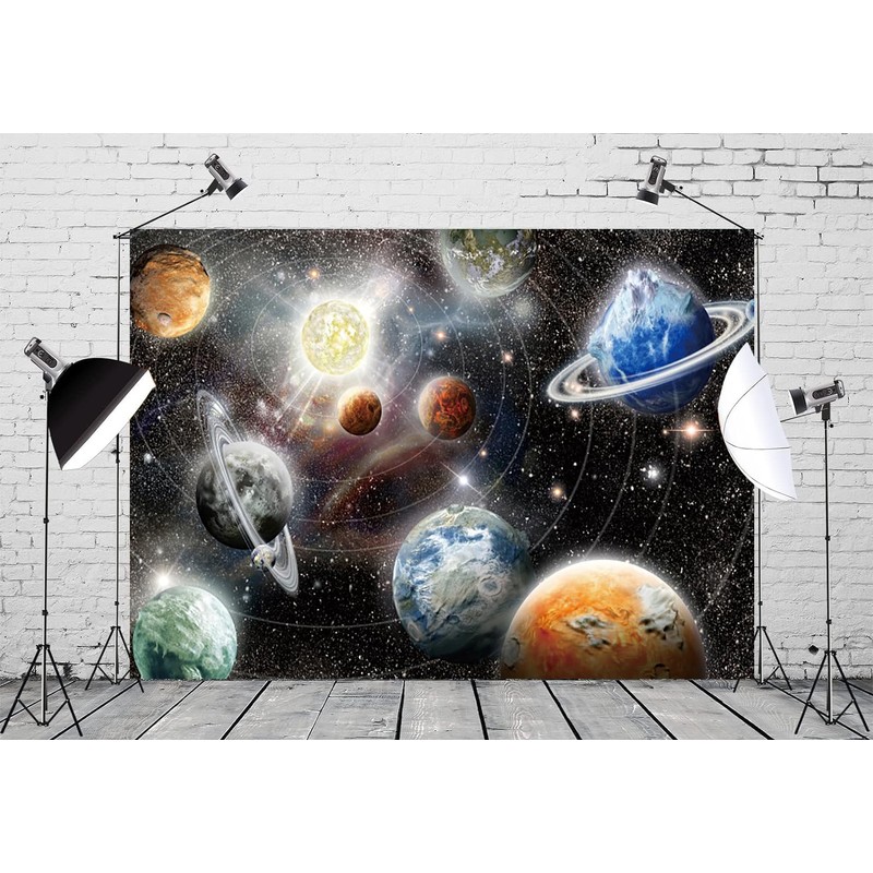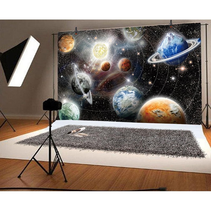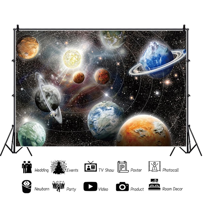 7x5ft Outer Space Backdrop Nebula Large Planet Solar System Starry Galaxy Glitter Photography Background Birthday Party Supplies Wall Hanging Decoration Kids Adult Portrait Photo Studio Props