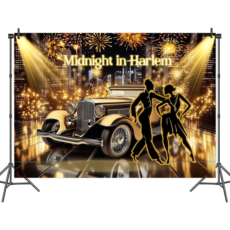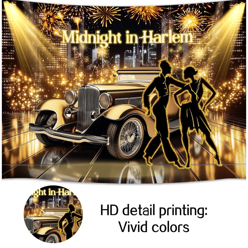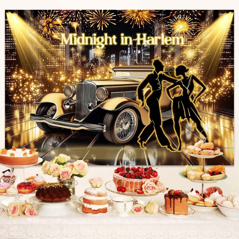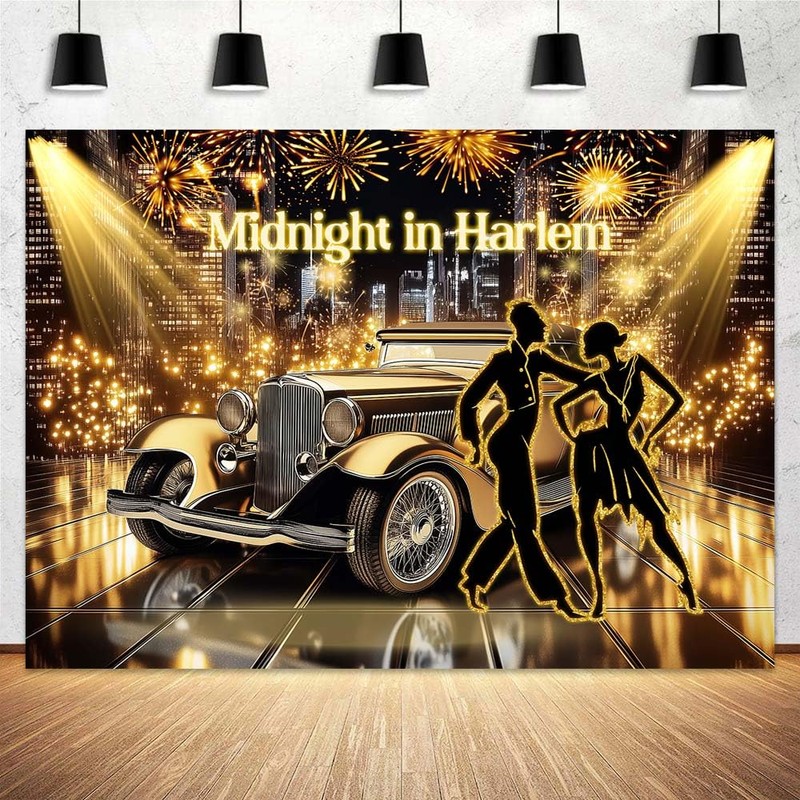7X5ft Roaring 20s Party Photo Backdrop Photography Background, Great Gatsby Black and Gold 1920s Speakeasy Party Backdrops Photo Booth Prop Decorations Wall Decor Tablecloth