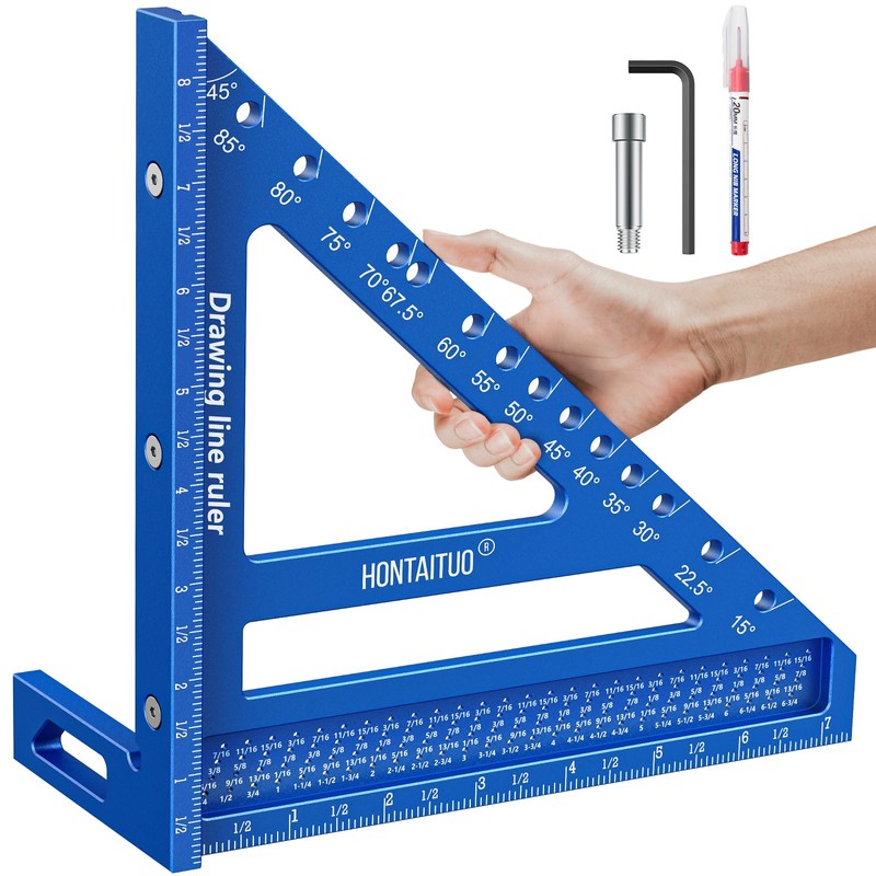 - Broad Applications:This speed square is ideal for DIY enthusiasts, engineers, and carpenters, offering versatility for various materials such as three-dimensional pieces and square timber. It combines the functionalities of a speed square, framing square, and carpenter square into one indispensable tool