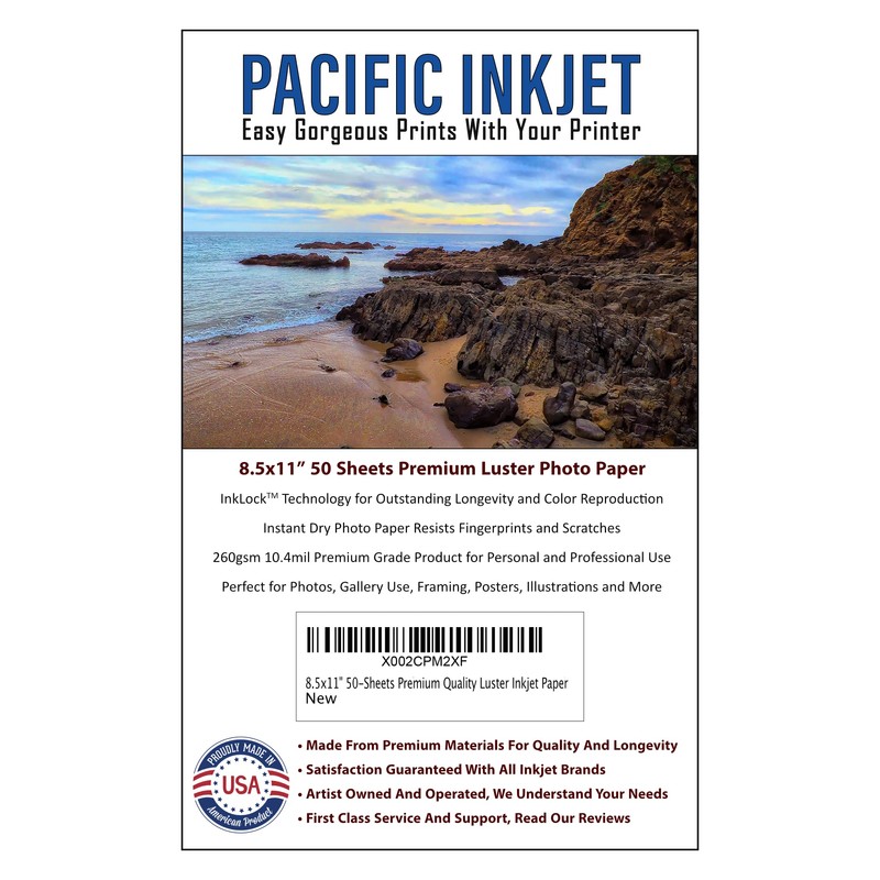 Whatever your needs, Pacific Inkjet premium luster semi-gloss finish photo paper is just what you need. It produces premium quality prints of your photos with amazing detail and highlights. The instant dry coating and photographic "E" surface helps protect your prints for generations.