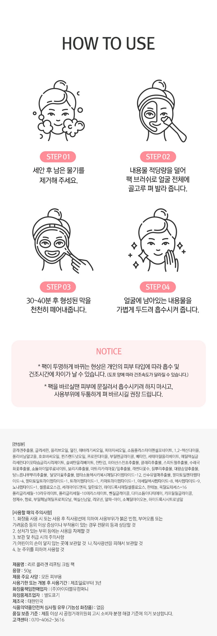 8개 구성리르 콜라겐 리프팅 크림팩필오프팩 8-Piece Collagen Lifting Cream Pack Peel-Off Pack