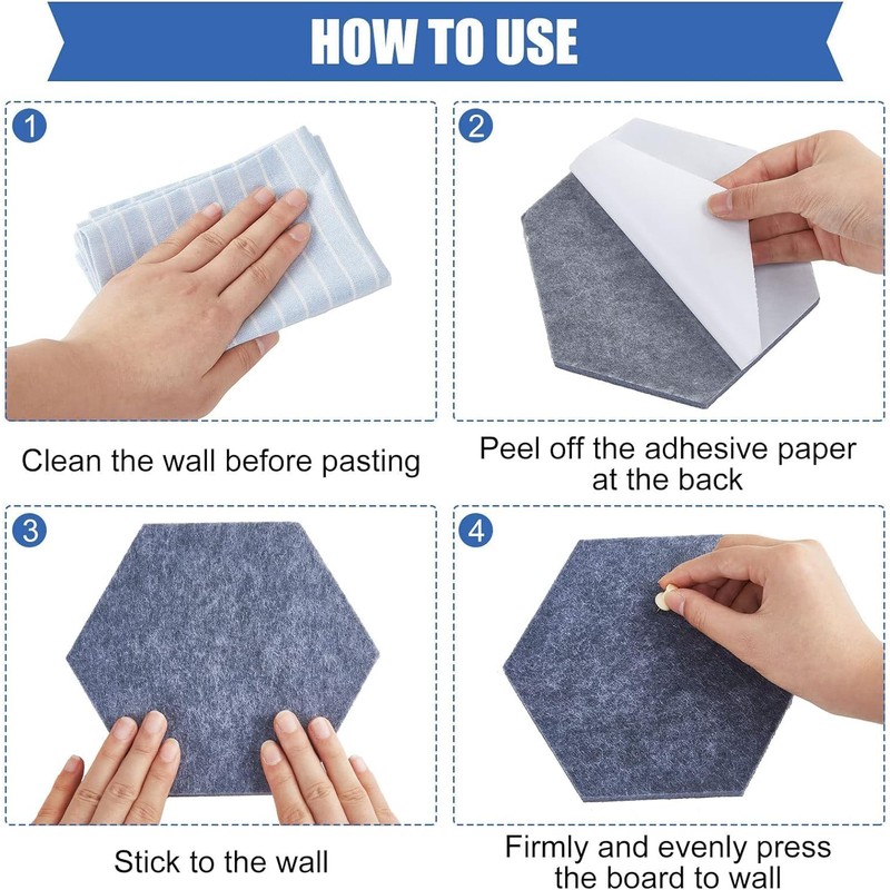 🌟Es fácil de instalar tableros de anuncios hexagonales de fieltro, sin necesidad de taladrar, simplemente retira el papel adhesivo y pégalo a la pared.