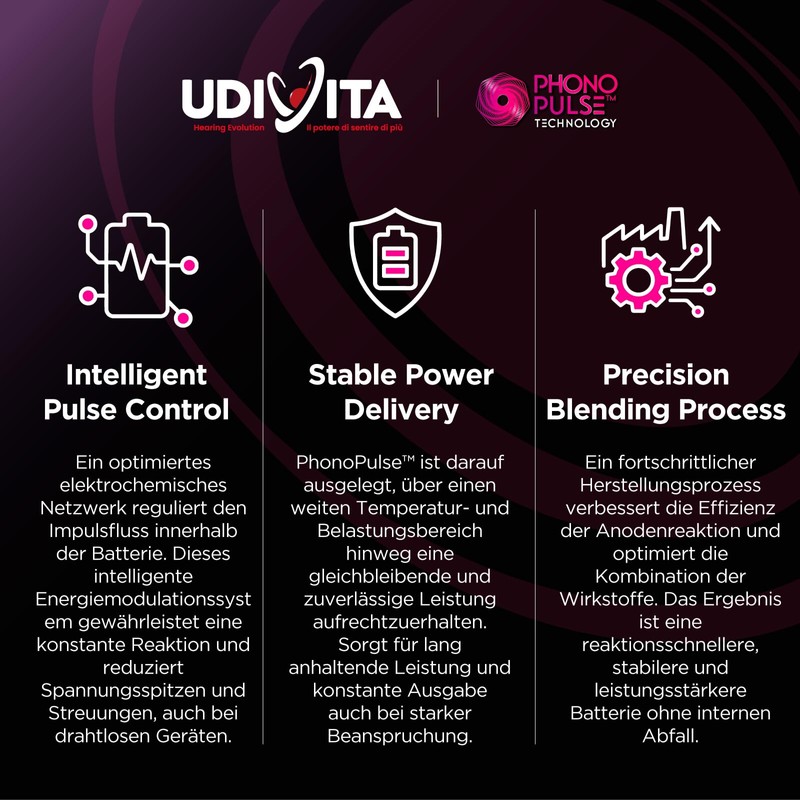 - 🔋 Zink-Luft Akkus 1,45V 310 mAh, quecksilberfrei. Phono-Pulse-Technologie für konstante, optimierte Energie, ideal für das tägliche Hören. Intelligentes Pulse Control-Energiemodulationssystem zur Regulierung des Impulsflusses und zur Gewährleistung einer gleichmäßigen Reaktion