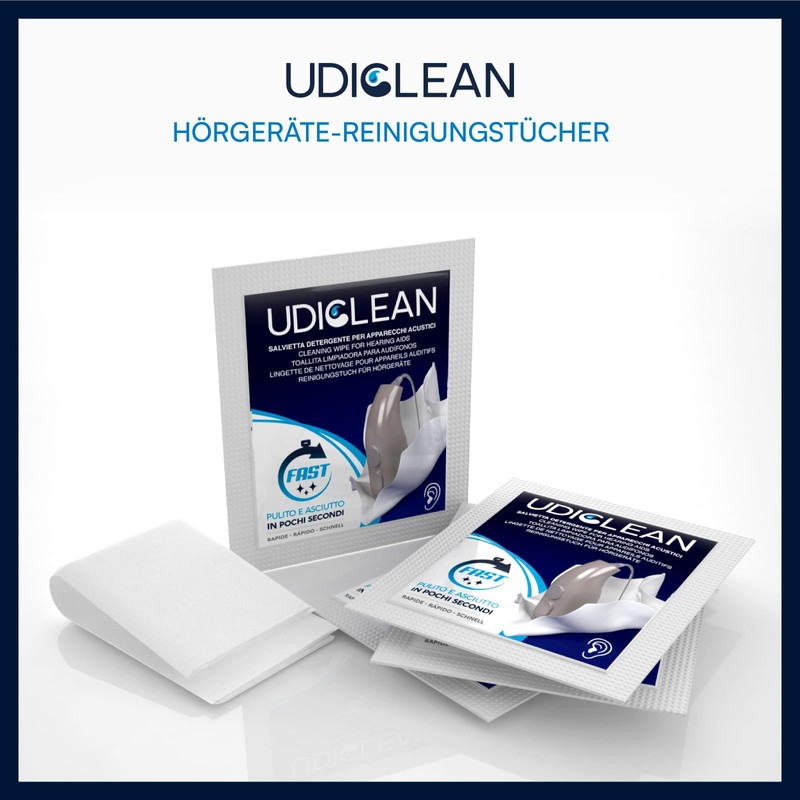- 💧 Reinigungstücher für Hörgeräte. In einer milden alkoholischen Lösung getränkt, reinigen sie, ohne zu beschädigen und hinterlassen keine Rückstände. Jedes Tuch ist einzeln im Taschenformat verpackt. Sie können auch zur Reinigung anderer Oberflächen wie Bildschirme und Gläser verwendet werden. In Sekunden trocknen