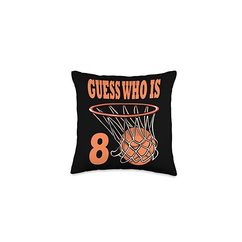 8 BDay Basketball Guess Who 8 Birthday Party Kid Happy 8 Year Old Basketball 8th Birthday Throw Pillow, 16x16, Multicolor