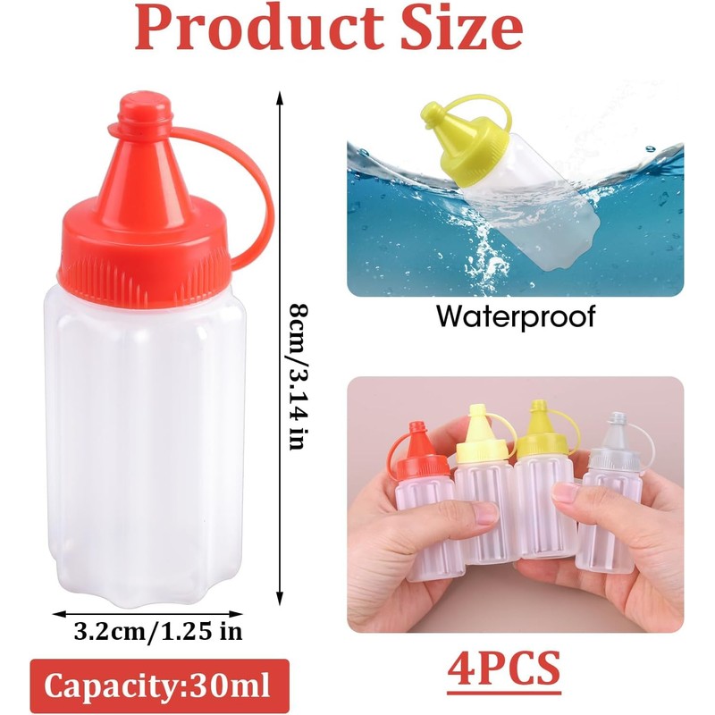 - 【Material Seguro】 Estas mini botellas de condimento están hechas de plástico de grado alimenticio, seguro y sin bpa. Apto para lavaplatos. Estas botellas de plástico suave son transparentes, puedes comprobarlas fácilmente y controlar la cantidad necesaria.