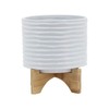 8" Ceramic Planter Stand, White with Wooden Base, Indoor/Outdoor Planter with Stand for Your Succulents and Small Plants, White Planter