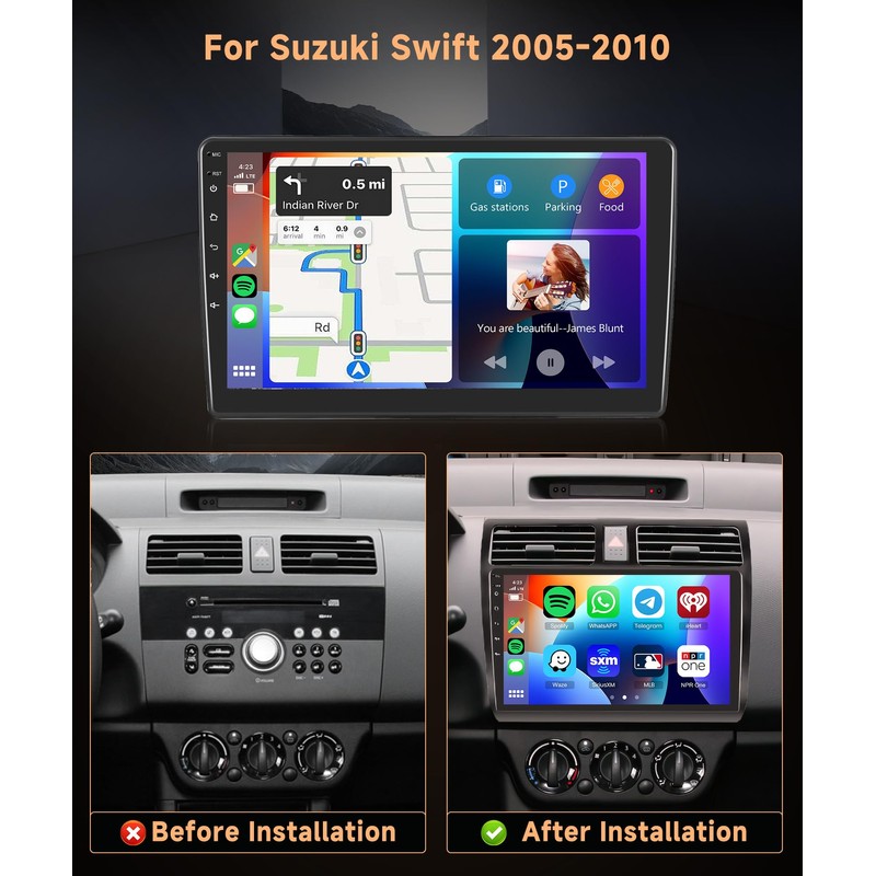 - Wireless Carplay & Wireless Android Auto & Mirror link: for 2008 Suzuki Swift radio support use iPhone or Android phone wirelessly with the device, and control your phone's apps. can make calls, send messages, play music, navigate with just your voice or touch. for 2009 Suzuki Swift car radio support IOS/Android mirror link, use USB cable or WIFi, mirror your phone's screen on the device's display, You can use your phone's apps, music, videos, etc on the device.