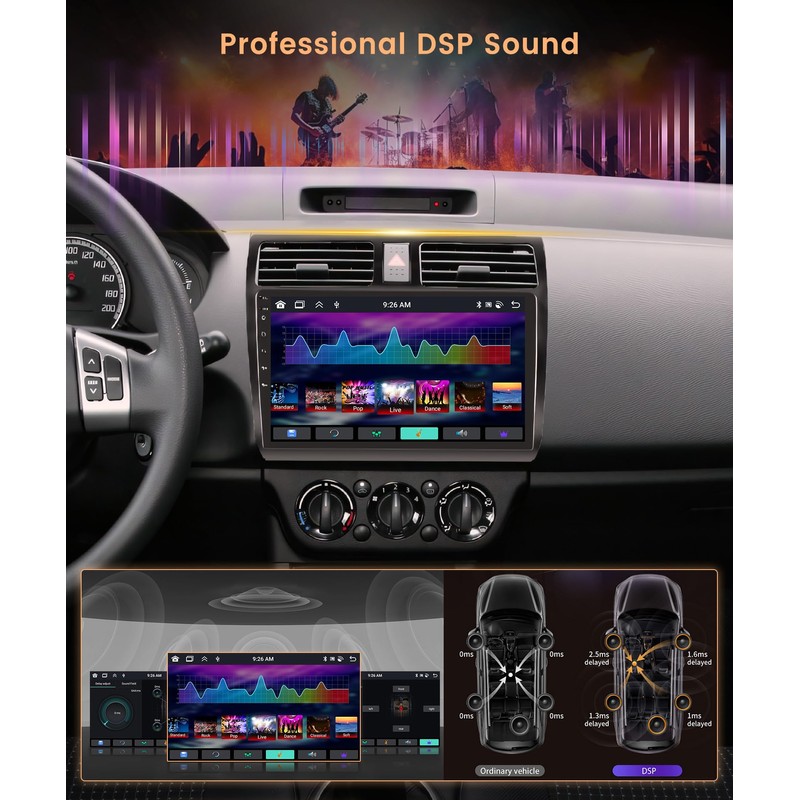 - Bluetooth & FM/RDS radio & DSP & SWC: for 2007 Suzuki Swift stereo support BT hands-free call, BT music playback, automatic loading of the phone book. 30 preset radio stations, support FM/ RDS function, CIear channel search and Iow noise. Car DSP tuning software, using DSP tuning technology, you can adjust the frequency, AE, 32-band equalization. Support SWC function, through it you can control the functions you need through the steering wheel, which is convenient.
