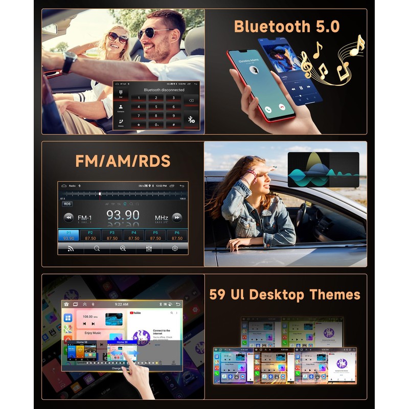 FM/RDS radio: Online music can be transmitted to the car stereo through FM to enjoy the original car stereo, 30 preset radio stations, high-end radio chip, powerful noise reduction and anti-interference ability, support FM RDS function, Clear channel search and low noise