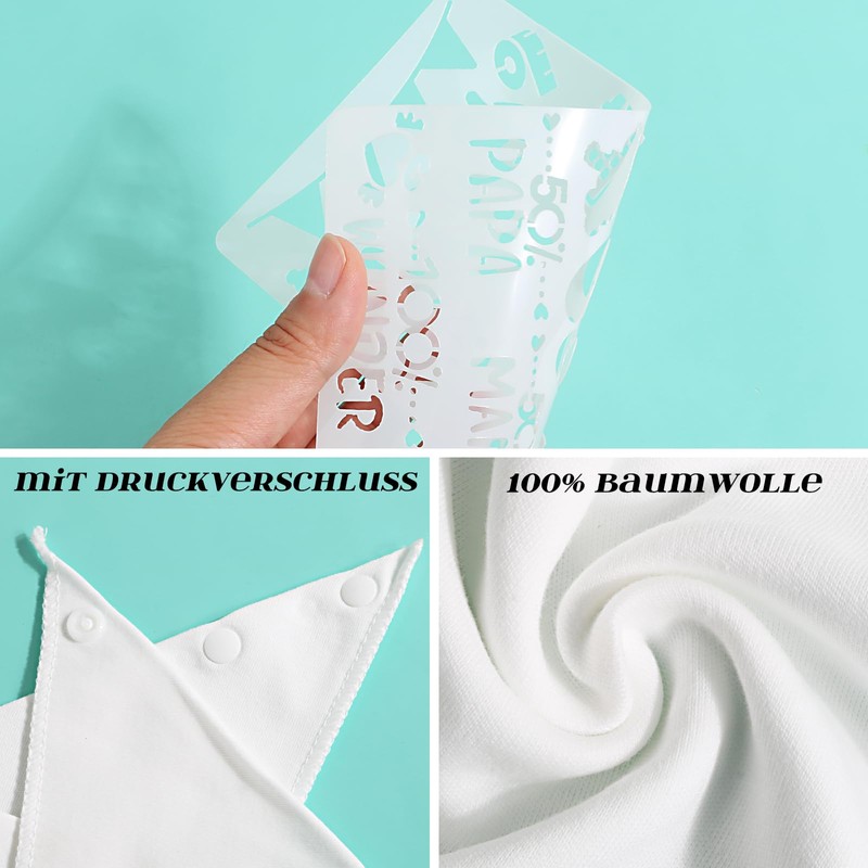 2. Die Schablonen sind aus haltbarem, flexiblem PET-Kunststoff hergestellt, leicht zu reinigen. Ideal für Baby-Lätzchen, Baby-Kleider, Baby-Schuhe, Scrapbooking, Karten und Kinderzimmer-Dekoration u.v.m.