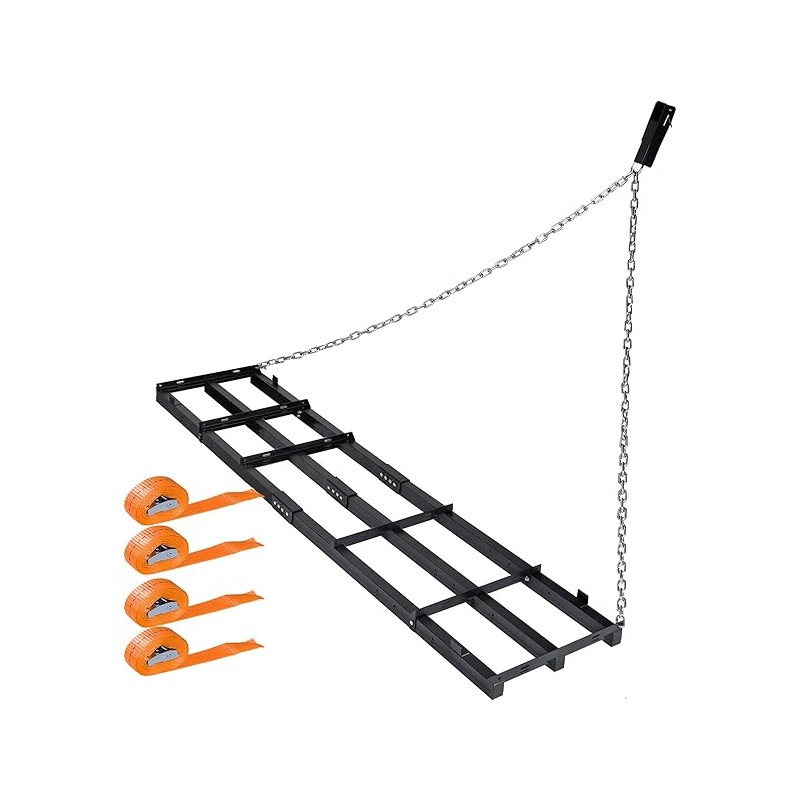 8 FT Drag Harrow Driveway Grader, Heavy Duty Power Rake w/ 6 FT Chain, Tow Behind Lawn Rake for ATV, UTV, Tractor, Mower, Land Leveler for Gravel, Sand, Soil, Hay