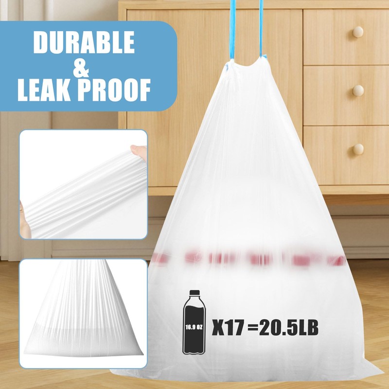 8 Gallon Trash Bags Drawstring-63 Count Pre-separated Medium Trash Bags 8 Gallon, White Unscented 8 Gal Garbage Bags