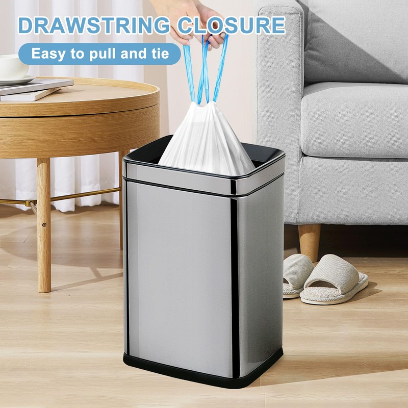 - [Drawstring Closure]The drawstring handle makes it easy to close the bags securely when ready to toss out. Simply cinch them up and throw away without touching whats inside.