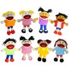 Movable mouth & hands creates an imaginative play experience. Great for role playing and storytelling that all kids love, an interactive Social-emotional activity for classroom puppet theater shows. 4 ethnicity puppets comes with boy and girl version. Nice detailing soft & cuddly plush puppets toys have colorful clothing and a variety of hair styles. Happy faces family hand puppets for puppet shows at home or in school teachers supplies for preschool These 8 pack Multicultural Hand Puppets for Kids are the perfect way to teach your children about different cultures and people from around the world. Each puppet is made of soft, durable fabric and features a unique design that is sure to capture your child's imagination. The set includes 8 different puppets, each representing a different culture or ethnicity. The puppets are perfect for role-playing, storytelling, and teaching children about different cultures. They are also great for developing motor skills, as children can use their hands to manipulate the puppets. With this set, your child can explore different cultures and learn about the people who make up our world. The 8 pack Multicultural Hand Puppets for Kids is a great way to introduce your child to the world and help them develop a greater understanding and appreciation for different cultures. Puppets and story time is a significant part of preschool learning, thereby making this set a must-have teacher supplies for classroom, preschool,kindergarten, & even Elementary school. With this bulk puppets set, your students can explore different cultures and learn about the people who make up our world.