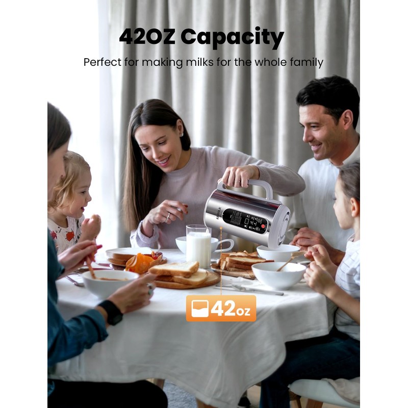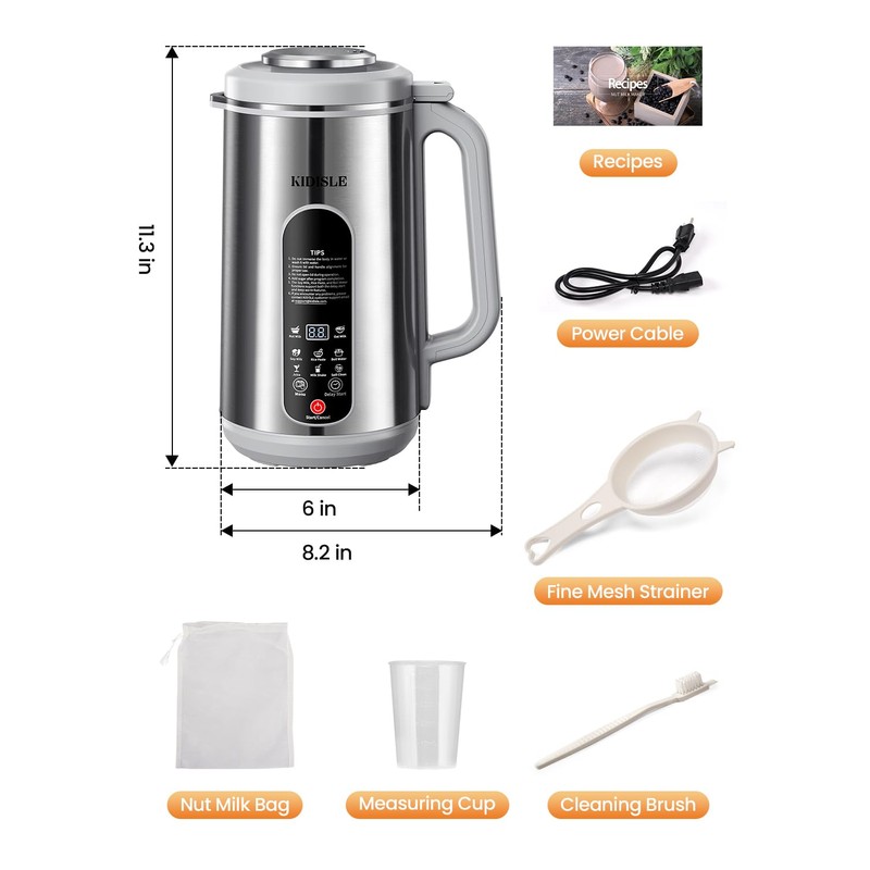 KIDISLE 8 in 1 Nut Milk Maker, 42oz Homemade Almond, Oat, Coconut, Plant Based Milks and Non Dairy Beverages, Stainless Steel Automatic Soy Milk Machine with Delay Start/Keep Warm/Boil Water, Silver